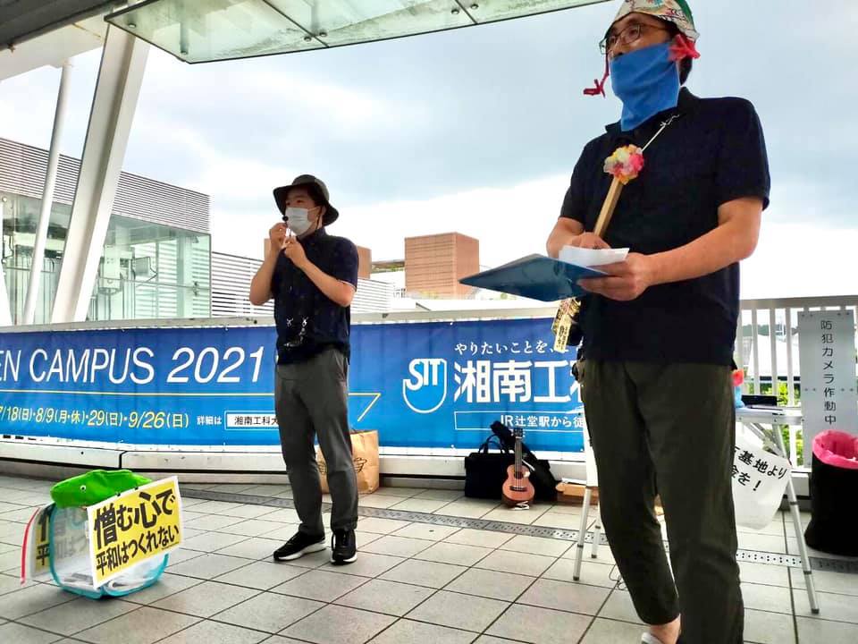 6月23日に引き続き、オリンピック中止、朝鮮戦争の終結、辺野古基地建設中止を求めて鶴見駅前で行動しました。